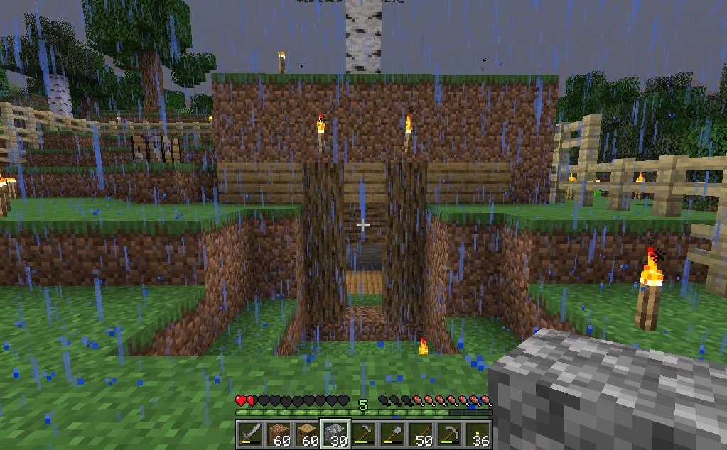 マイクライフ 12日目 屋内整備 マイクラ 2019年06月04日 バージョンアップが来たようです(ver1.14.3 Pre-release1) 一応バックアップを作成し、ゲームにIN。 11日目が終わる所からスタートです! 畑に触りたいけど、ファントムがこわいので、マイハウスの整備から始める事にします。 我が家の出入り口はまだ扉すらついておりません……(笑) 敵が入って来なけりゃいいんだよw 扉をつけると見通し悪くなるし、ゾンビとかにドンッドンッって叩かれるのコワくない?w 土壁も味気ないので、木材で差し替え直し。 う、うーん……?? とりあえずこれでいい事にしておきます。 夜明けが来ましたか、今日もまた雨……雨率高過ぎないか、この地域。 エネミーもいなさそうなので、さっそく畑へ! 収穫! パンって小麦3個使うんだっけかな。まだまだ全然足りませんが、種が同時に収穫できるので、どんどん増やすべく拾った傍から植えていきます。 ふと振り返った我が家の入り口。……なんかエキセントリックな建物のようだw 畑の手入れついでに柵の位置を直したり、土を削ったり盛ったり、少し敷地内も整備しました。 すごくすっきり! 明日もまたがんばろう……(´ー‘) [0回]PR