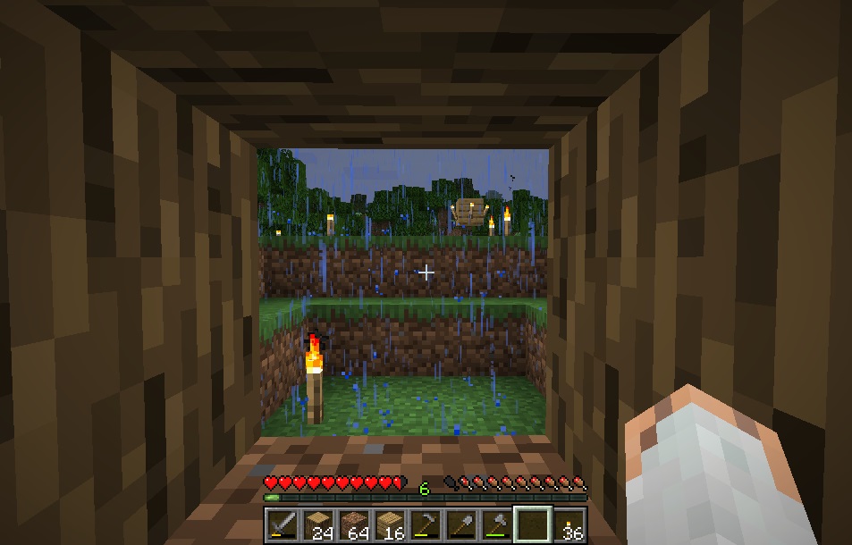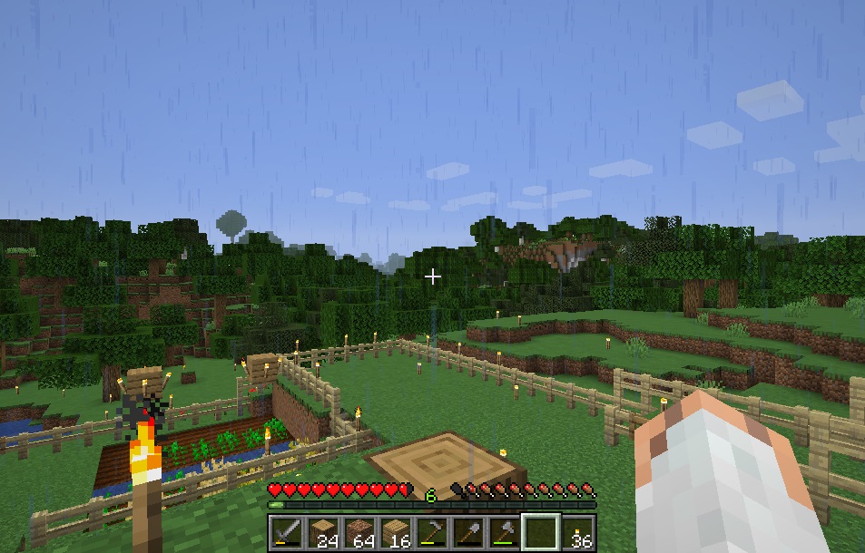 マイクライフ 14日目 瓢箪から駒ならぬ、花崗岩から鉄 マイクラ 2019年06月10日 パンを食べてHPを回復したけろです。 小麦を収穫した時点で外は雨……どころか、雷雨です! KIKEN過ぎるwww 食糧の確保のめども立ったので、そろそろ鉄が欲しい所ですが…… 雷雨のss撮ろうと待ってたら夜になってしまいました(笑) やる事もないので家の中に手を加えてみます。原木の梁なんかあったりするとオシャレに見えるきがするので、こんな感じに。ブロックが増えてきたので、チェストも増やします。 奥の部屋をいじっている内に、14日目の朝が来ました! まだ雨降ってる! 雨多過ぎィ! 昨晩は家の中でおとなしくしていたのでファントムも沸いておらず、日光はありませんが外に出ても大丈夫でしょう……よし今日はなにをしようかな! とか言ってるうちに晴れました! ラッキー! 昨日、雨であまり活動できなかった分、柵の外に出て伐採とか柵の増強に励みます。 少しでも見通し良くするためにと木を切っていたら、おや……これは! サトウキビ! 直接の食糧ではありませんが、あるといろいろ便利な作物です。川の傍とかには良く生えているの見るんですが、森林地帯で見たのは初めてかも。もちろん確保です! 伐採した後のリンゴとか木の棒拾い、敷地を広げる為に柵の増設、無心に取り組んでると、あっという間に日暮れが……ああ、今日も良く働いたなぁ。しみじみ(´ー`) 小麦の生育も順調なので、畑の拡張も視野に入れときたい所です。 さて……ファントムが出る前に家に入っておこう……w 奥の部屋に花崗岩が露出しているので、建築素材に取っておこうかなぁって思ってたので、 夜はそちらの作業に。 掘り進めてみたら、鉄……だと!? 鉄も混じってました。もちろんゲットします。 花崗岩は磨くとちょっとシャレた素材になるので、好きなブロックの一つなのですが、おまけもつけてくれるとは……見つけた鉄は全部で4つ。……バケツでも作るか……!? バケツがあれば、畑もバージョンアップできるし、うまくしたらゾンビトラップ作れるかも…… 夢は広がります。 欲に駆られてだいぶ掘り進めましたが、うん……もう無いね(´ー`) 埋めて部屋壁に戻しておきました。 [0回]PR