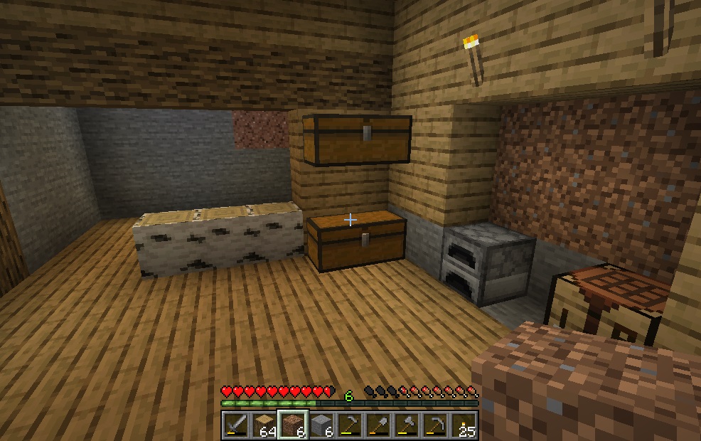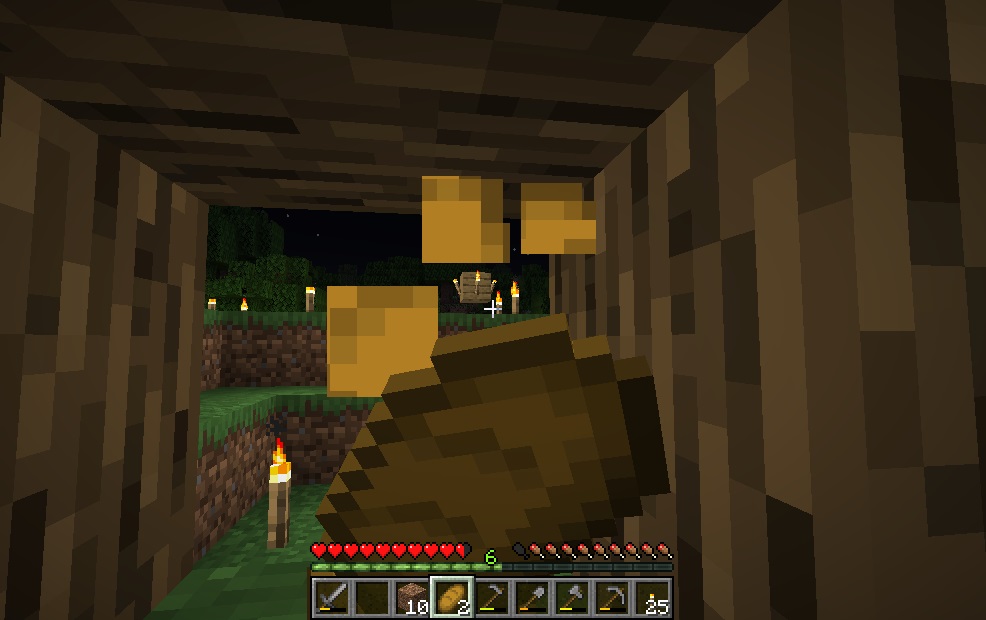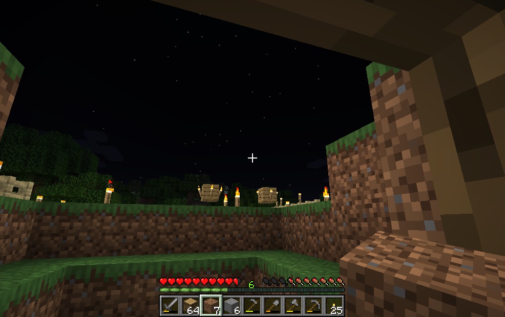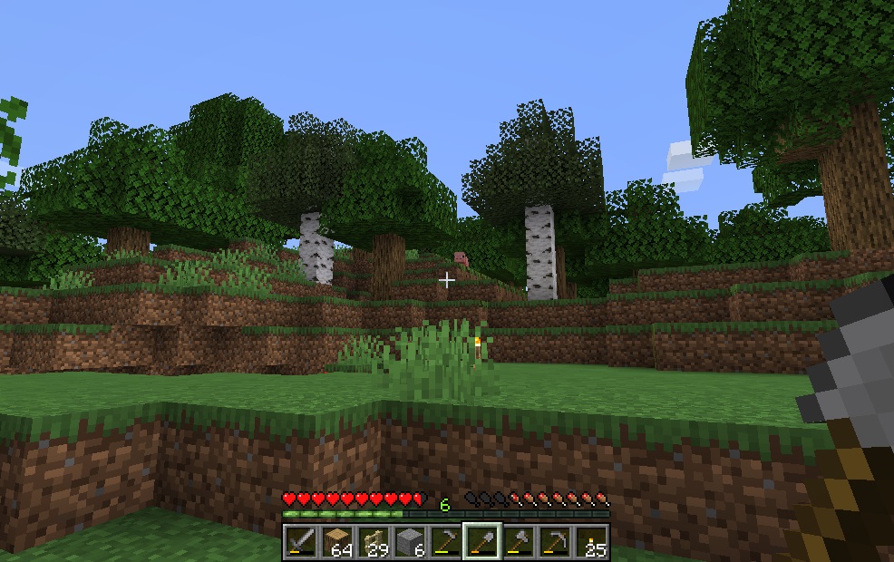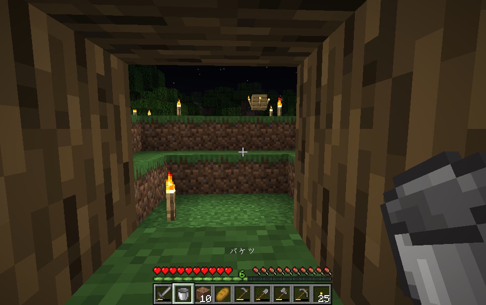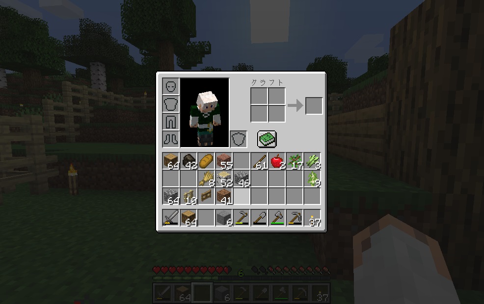 マイクライフ 15日目 開墾の鬼と化す マイクラ 2019年06月16日 Minecraft 1.14.3 Pre-Release3 来ました! 結構マメに更新されてるんですね、知りませんでした(*´∀`) 今日も一時間タイマーセット。さあ、やるよ! 15日目の朝です。周囲に不穏な気配は無し!(今のところは……w) 本来、夜の空いた時間にやるといいのかもしれませんが、昨晩は鉄フィーバーで……それどころではありませんでしたので(笑)、手持ちのアイテムを確認。食料の確保もどうにか安定しつつありますし、ちょっと安心。白樺のフェンスが足りないかな。少し作っておきましょう。 と、作業台前に立った瞬間ゲボッというかゲフッというか聞こえてきて……ゾンビさん、今日は超お天気良いですよ! 敢えて襲いに来るっていう、なかなかのチャレンジャーだな! ゾンビーフを落としてくれたのでゲットしておきました。 畑の方も順調な生育状態のようです。も少し畑の形を改良したい所ですが、今日も今日とて、敷地の確保に励みます。 地面を切り崩したり、木を切ったりしながら、柵をぽんぽんと置いて行きます。 むむ、これは……? 洞窟発見か? と、思いきや、ただの窪みだったようです。残念。……いや、ここがもし洞窟だったら、もっと危険地帯だよね、ここいら……窪みで良かった(笑) 開墾中にブタを発見。初日にいたアイツだろうか……食糧にしようか、一瞬悩みましたが、今日の所は見逃しておいてやる事にします(笑) イモとかを持ってたら良かったんだけどね……畜産の類はもう少し先になりそうです。 ギリギリまで働いていつのまにか暗くなってきまして……その朝作ったフェンスが一個足りない! うわーどうしよう、ここからむしっちゃえwぶちっ! みたいにその日の野良仕事を終えました。ふー、危ない危ない……。 夜になると、時々家の中でゾンビの声がどこからか聞こえてきます。外に出ると声がしなくなるので、家の中にごく近い所にいるんだろうけど。声はすれども何とやら、です。('(-ω-;)ハテ 夜になりましたので、ゆっくりとくつろぎながら(ゾンビの声するけど)、アイテムの整理をします。 昨晩かまどにぶち込んでおいた鉄、そういや忘れてましたハハハ…… メシでも食いながら朝を待つとしましょうか…… 鉄はさっそくバケツに変身しました。 [0回]PR