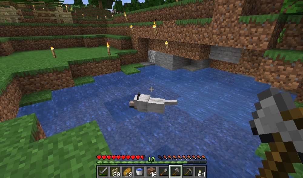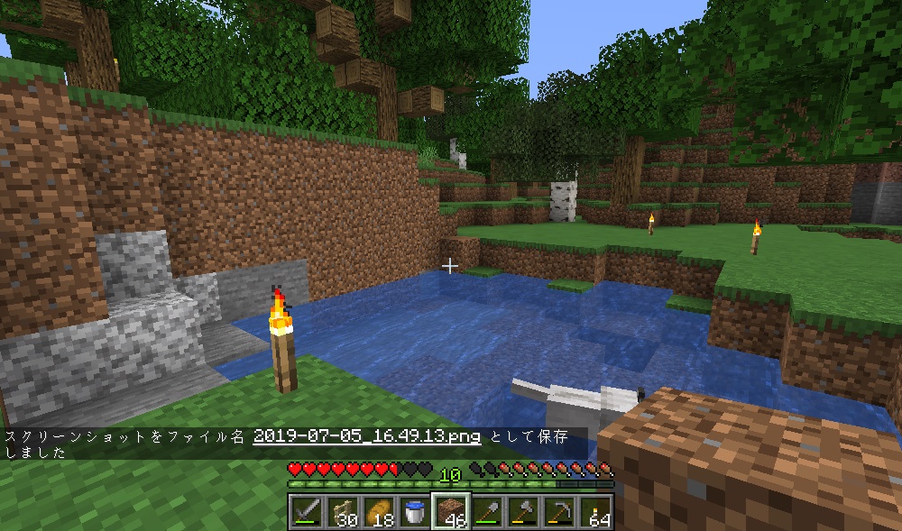 マイクライフ 26日目 変なヤツらが来た マイクラ 2019年07月06日 Pre-release1.14.4が来ました。バックアップしてゲームスタート! 先日は種まきを終えた途端、ファントムに襲撃され、3体倒した所で26日目の朝を迎えた次第です。 いや、ほんと、朝っていいよね……(ヽ´ω‘) ものすごーく作りたいってわけではありませんが、必要かな?と思う牛小屋の為に、使う予定の木材を伐採している傍で、わんわんは優雅に水浴び……水浴び好きなのかな?(*´∀‘) ここは自宅から西に位置している池で、ここらもそろそろ敷地に組み込みたい一帯です。 変な形の池なので、ちょっと整地と言うか土とか削っていたら、……んん!? 鉄鉱があるじゃありませんか! まだバケツしか作ってない自分にはありがたい鉄発見!! ひとつ残らず頂戴しておきましょう(・∀・) そんなに数なさそうに見えましたが、全部で10個ありました! 嬉し過ぎます(*´ω`*) 池の整地も終わり、午後の日差しも陰って来たので、木材の伐採に戻る事にします。 今夜はさてどうしようかな~。窪みの所に穴でも掘りに行くのもいいかもしれない。 と、いうのも、プレイヤーの頭上に透過度1以上のブロックがあると、ファントム沸かないらしいのですよね。 (「パイセンのマイクラ攻略教室」様というサイト様で調べさせていただきました! お世話になります!) というかいい加減ベッドも欲しいな……(´ー‘) わんわんお羊狩ってきて…… さーて夜になったし、家に戻るか……と思って、ふと横を見ましたら。 ……何か変な人たちがいる……肌の色変だよ……?? もう一人の方は、頭が異様に長いし……エンダーマンの方が何かふつうにかわいいよ……?? ずっとこっち見てるし……キモイですな。 ……あーーーーあれか! 襲撃者!(?)みたいなアップデートがありましたね!あれですね!? あれ、村を襲うんじゃなかったの? 何でうちに来てるの?? ど、どうしたらいいんだ……2体いるけど……キルオアダイしておくべき?? と、いうわけでちょっとチャレンジしてみようとおもいます! ファントム出てこないといいんだけどね! 石の剣だと心もとないので、鉄を精錬してから、鉄の剣を作ります。なんかアワアワしゃべってるよマジキモイ。 さあやるよ!……と、さっきの場所に戻ったら、あれいない……もうお帰りになられたんでしょうか。 ただの斥候だったのかな? 頭の長いヤツ、ほんと気持ち悪かった、生物的に不安感を覚える容姿でした。 そんなこんなで変なヤツらの一大事で一晩過ぎて朝を迎えたのでした……。 [0回]PR