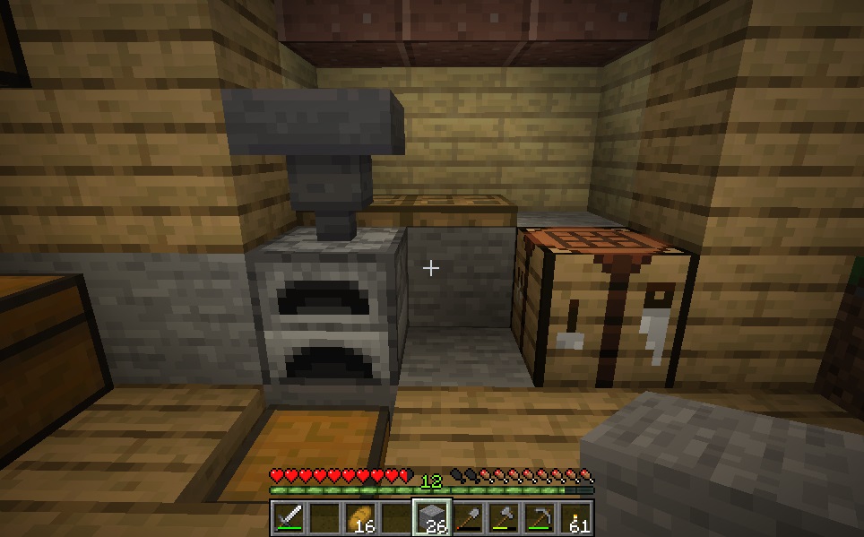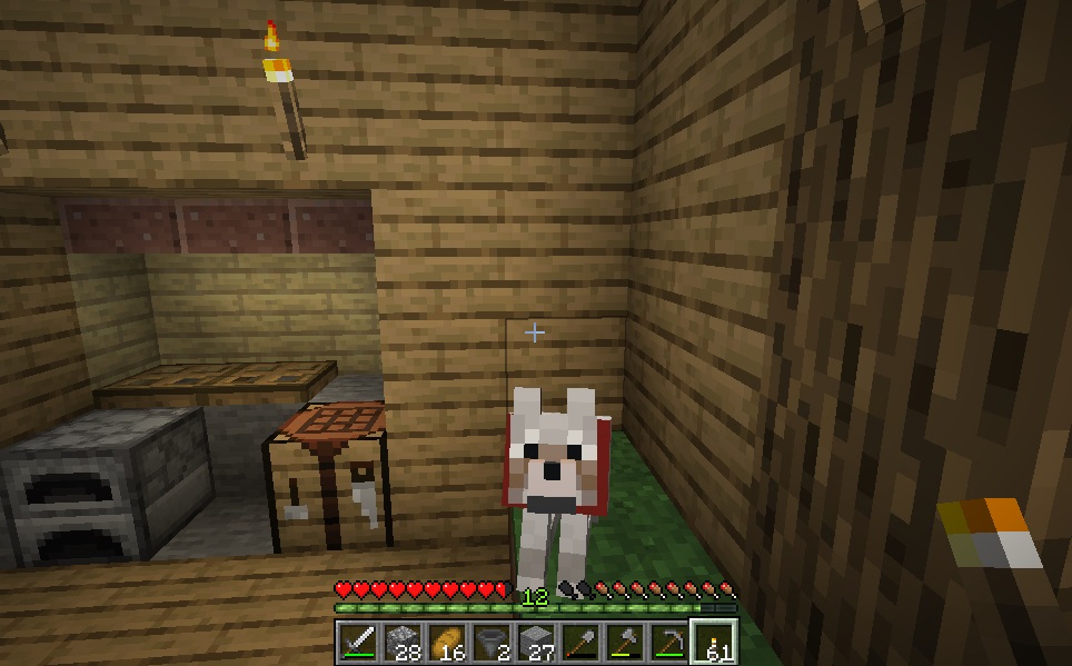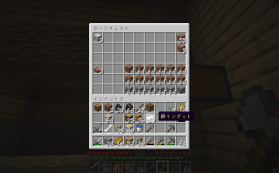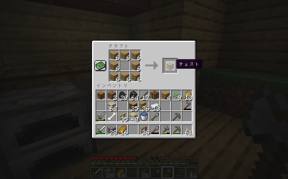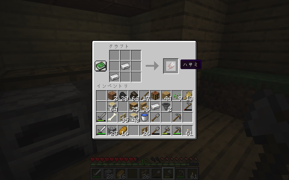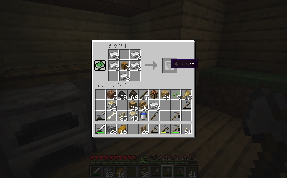 マイクライフ 29日目 かまどの簡易自動化 マイクラ 2019年07月08日 穴掘りから牛小屋建築へ直行し、おはようからおばんですまで働き続け、牛小屋は大まかに形が出来てきました。 牛はケツ向けてるし、犬はそっぽ向いているし、どうしてこうベストショットを撮るのが下手なんだか……犬が戻って来てくれたので、細かいことは気にしないでおきたいと思いますw 昨晩の鉄鉱石を合わせて、現在、鉄インゴットは13個。ホッパー2個とハサミが一つ作れる量です。 まずはホッパーを作る為にチェストを2個作ります。 これを9マスの真ん中に置いて、まわりに鉄インゴットを並べます。 ホッパー完成! チェストと組み合わせ、簡易自動かまどを作る為に流用します。 そしてハサミです。 2個で作れるのに、様々な利用法がある万能アイテムです! 羊の毛刈りからカボチャの種のくり抜き、木の葉をそのままブロック化したり、廃坑に生成されるクモの巣を切り取って糸にする事も出来ます! 夜になってしまったので、今日は大人しくおうちに籠り、かまどを機能拡張してみます。まずわんわんを傷つけたりしないようにお座りしててもらいます……かわいい(*´∀‘) で、ちょちょっといじって完成! ①のホッパーは、焼きたいものを入れると、かまどに自動投入されます。 ②の方は、焼き上がったものを、前に置いてあるチェストに放り込む役割をしてくれます。 もっといろいろつなげたり、リピーターとかいろいろ使えば自動木炭製造器軟化も作れますが、今はまだこれで十分! 地下道建設にあたり、必要となってくる木炭製造なんかも、だいぶはかどりそうです。 [0回]PR