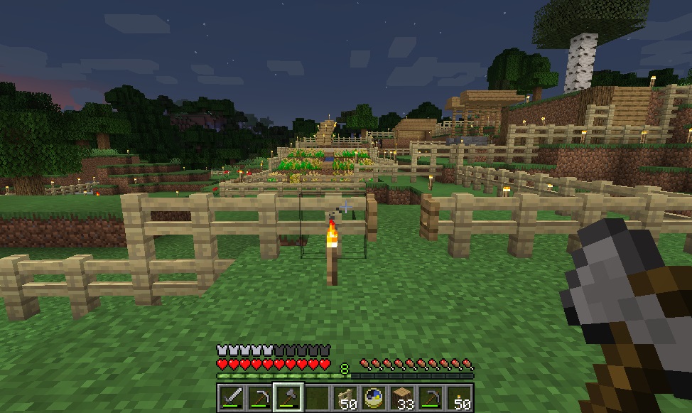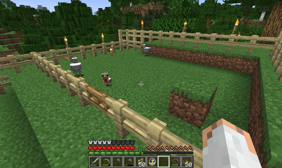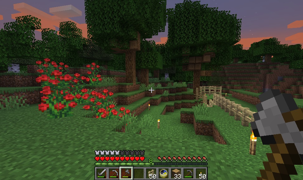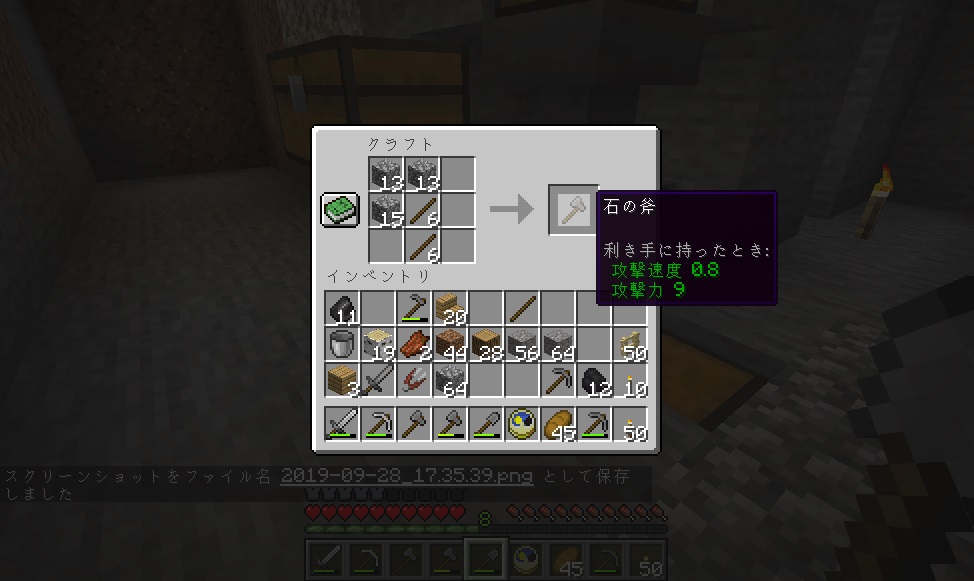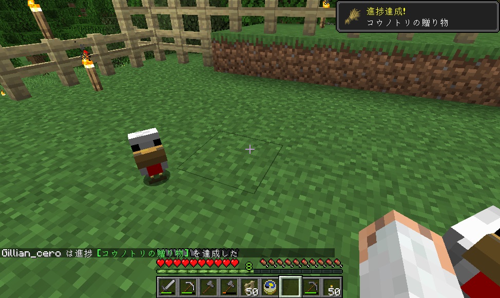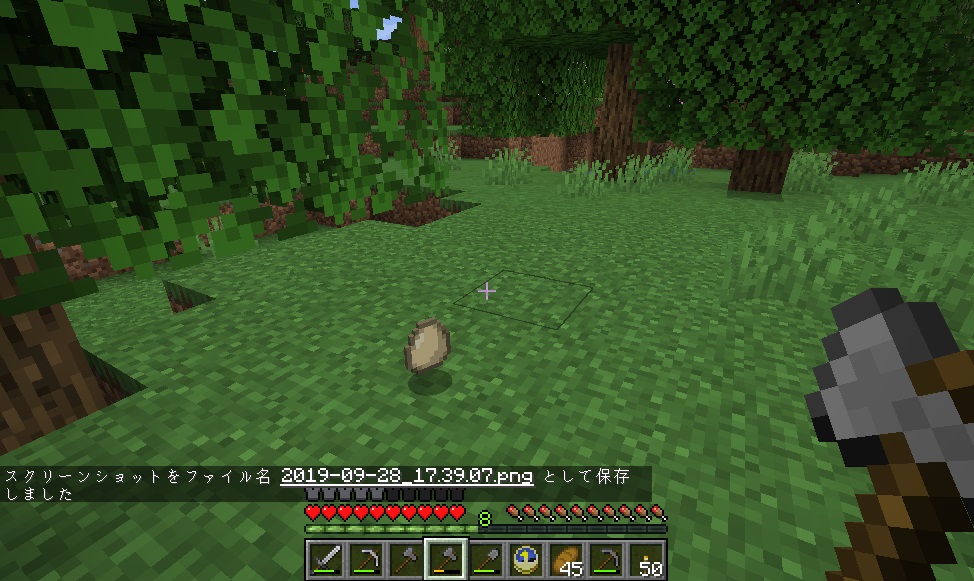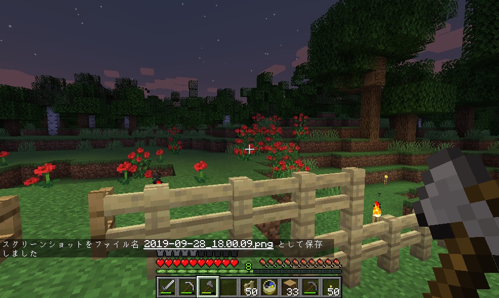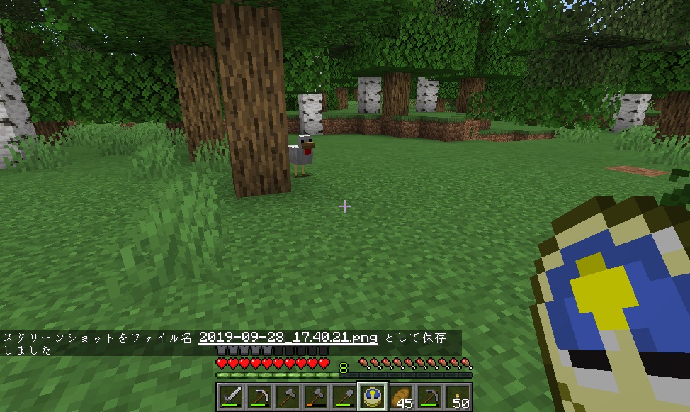マイクライフ 44日目 家族が増えました(食料用) マイクラ 2019年09月28日 久し振りにバージョンアップ来ました。 前回は地下で終わったので、今日は地上に出て木材の伐採を目標にしようと思います。ブランチマイニングするのに必要な木炭確保の為です! 斧を作り、いざ地上へ! 木を切っていると、おや、ニワトリの卵が……近くにニワトリがいたので捕獲を試みます。その辺の草を刈って種を入手できたので、テイミング~。 ニワトリの敷地に入り口なかった気もするけど、まあ後で作る事にしましょう。 ニワトリ小屋(予定)地には入り口があったので、新しいニワトリをそのまま中へご招待。元からいた方も卵を産んでいたのでこれも回収します。 両方にエサを与えるとラブラブになって、見事ヒヨコ(?)誕生! こうなれば後は繁殖し放題です。 木材の伐採に戻ります。日も陰って来ていたので、もう長時間は出来ないけどギリギリまでがんばります。 3~4本切ってるうちに空が赤く……もう夕暮れです。 夕暮れ早過ぎないか! 急いで家に戻り、伐採してきたところ(今回は南側)を振り返ると、だいぶスッキリしているのがわかります。 オークの原木1スタック以上、白樺が47個。まずまずの成果かと思います。 普段ゲームをしながらブログを書いているのですが、その時はゲームをEscで時間を止めているんですね。書きながら音楽が流れてきて「えっ!?」って思ったら、チェスト開けて画面が暗転している状態のまま書いてたっていう……半日ムダにしましたヽ(;´Д`)ノ 朝になっちゃったので、今日はこのまま新しい記事へ突入するよ! [0回]PR