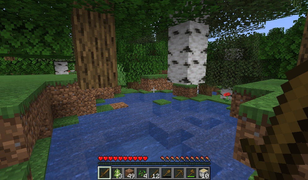 マイクライフ 2日目 スケさんはそこにいるのか マイクラ 2019年05月24日 2日目です(マイクラ時間) 昨夜のスケさんの足音にビビりながら、完全に明るくなってから外に出てみました。 辺りをうろついてみましたが、スケさんはいませんでした。ラッキー! 日光の実力を見たか! 心底安心しながら(ほんと戦闘苦手なんです)、この日の予定の石の確保を目指します。 で、すぐ見つかりました。自分が避難所にしてた穴ぐらの足元にたんまりありました……土を一段掘ったらすぐ石っていうね。あるあるだね。 ウボァーはまだ聞こえるので、付近に自然洞穴か何かがあるのでしょう。 石の確保が案外早く済んだので、木炭確保用&穴ぐら周辺の安全確保の為に、ひたすら伐採に励みます。 近所の池の上に木が生えて(?)いました。イリュージョン。邪魔なのでこいつらも切り倒します。 ほぼ木の伐採で二日目(マイクラ時間)を終えました。さよなら太陽…… タイマーで一時間を計りつつゲームしているのですが、一時間って結構いろいろできるんだね。 次回はかまどを作って明かりの確保とか拠点の強化、周辺整備を目指してみようと思います。 [0回]PR