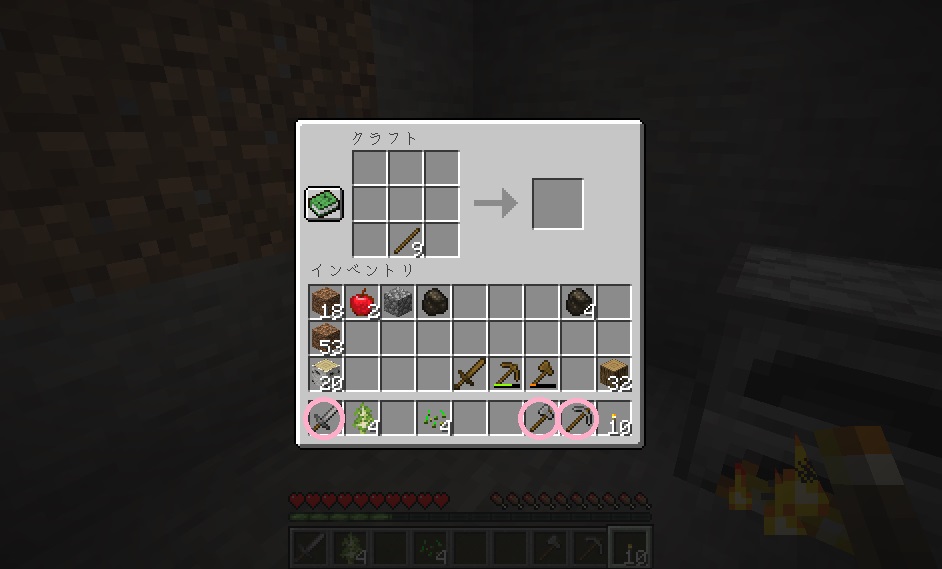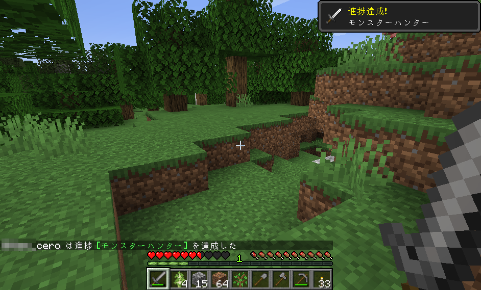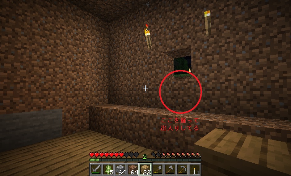 マイクライフ 3日目 明かりのある生活 マイクラ 2019年05月26日 けろです。初日と違って石が手元にあるので、夜にも制作活動に励む事が出来ます。 装備もグレードアップ! 木材とか石の採集がはかどりそうです。 でも、やっぱり外に出ての活動はあまりにも危険すぎるので、内部から拠点の拡張を始める事にしました。 と思っている矢先。 またもやスケさんの足音が……! しかし、外の様子を伺う為に開けているブロックのスキマから、チラっと見えたんです。犬のシッポが……!! ……スケさんの足音が聞こえなくなりました……犬(オオカミ?)の唸り声と共に…… この森には守護神(オオカミ)がいる! なんという幸運! 俄然やる気が出てきましたよ(・∀・) 拠点の拡張を少しずつ進めたりとか何とかしているうちに、3日目の朝がやってきました。 今日も生きてる……なんて清々しい朝なんだ! オオカミ様いるかなぁーなんて思いながら、その辺ぶらついてたら、オオカミではなくスケさんを発見……! ぅおおおおおおぃぃいぃオオカミィィィィ!!!(どこ行ったんだ) ちらっと見えた筈のオオカミは、もっと美味なスケさんを探しに行ったのでしょうか……作ったばかりの石の剣で戦闘開始。木陰を移動しつつ、背後から襲撃! 遠隔タイプのスケさん退治はどうにも苦手です(いえ、戦闘そのものが苦手なんですが……) 日光の側へ追いやりながら、どうにかこうにか初の戦いを乗り切りアチーブ獲得。戦闘中ってスクショ撮れないなーそんなヒマないわー。 拠点を内部から広げるために、外側に土を盛り補強します。増やしたたいまつで周辺だけでも沸きつぶしをしときましょう。 何となく人口建築物に見えなくもない状態になってきました。 石の確保は拠点内で行う事にしたので、明るいうちはとにかく伐採、伐採! どこからかスケさんのカシャカシャが聞こえますが(スケさんしかおらんのかこの森は)、自分には石の剣という強い?味方がいるので、慎重を期しつつ伐採を進めてみると…… なんだそこにいたのかー! 木の間に挟まってました。 もちろん、一方的に攻撃します。こういう戦闘は超得意です! そして日が暮れ……ですが、夜はもう明るい灯火があるので拠点を広げるタイムに突入です。 昼間の間に稼働していたかまどで、木炭制作も順調です。 石確保と屋内を少しでも快適にする為、床の石を剥ぎ取ります。一挙両得! 掘った後には木材を敷き詰めてみます。 いい感じ! より家らしい雰囲気に一歩近づいてきました。 我が家の出入り口。チビゾンビ対策の為入り口の向こう側は一段掘り下げています。 [0回]PR